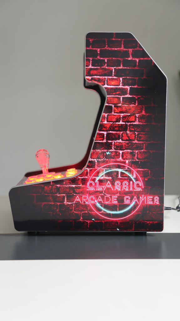 Enjoy endless classic entertainment with this Mini Bartop Arcade! This compact and stylish unit comes preloaded with 10,000+ free play arcade games, offering a huge variety of classics games for fun.